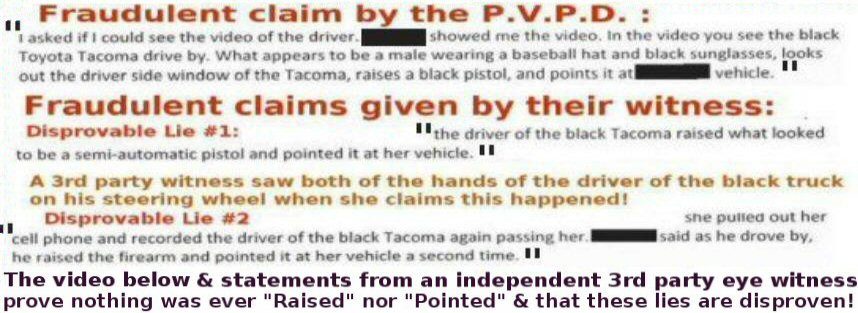 The complete unedited video (same one used by PVPD to base these fraudulent charges on) is right below these statements from a 3rd party independent eye witness:
